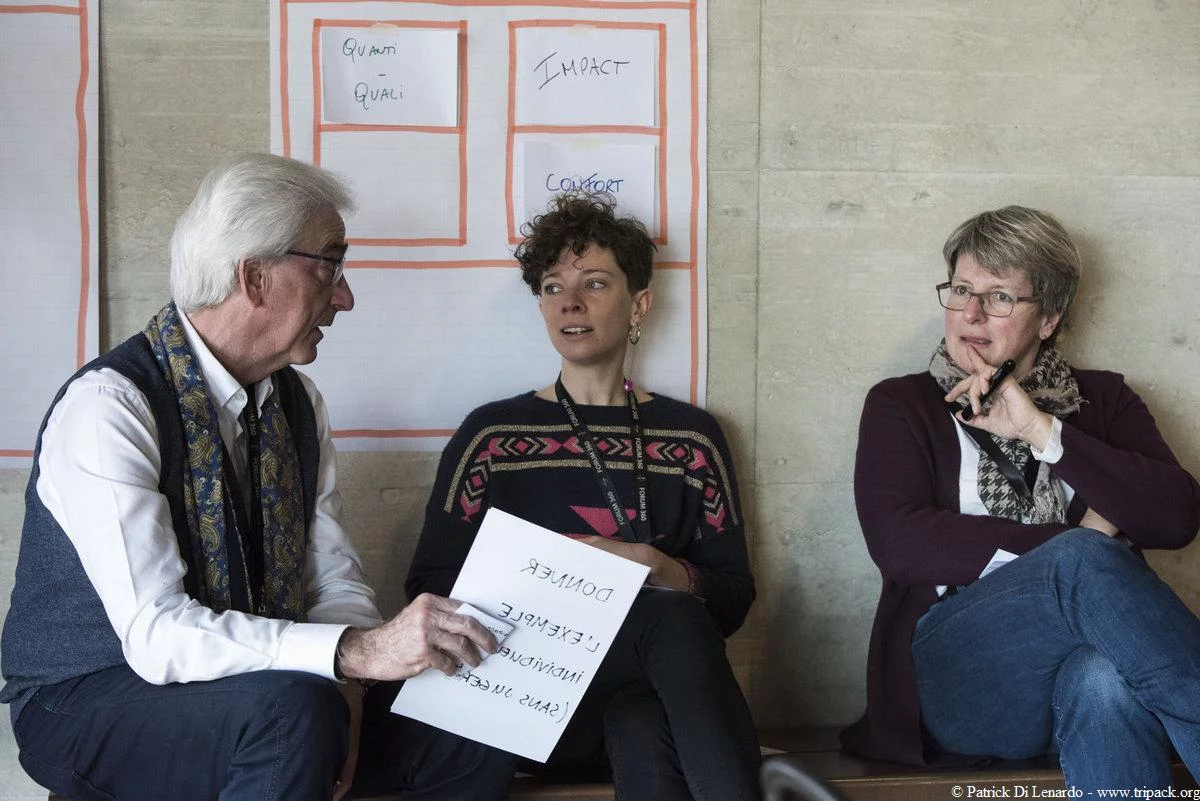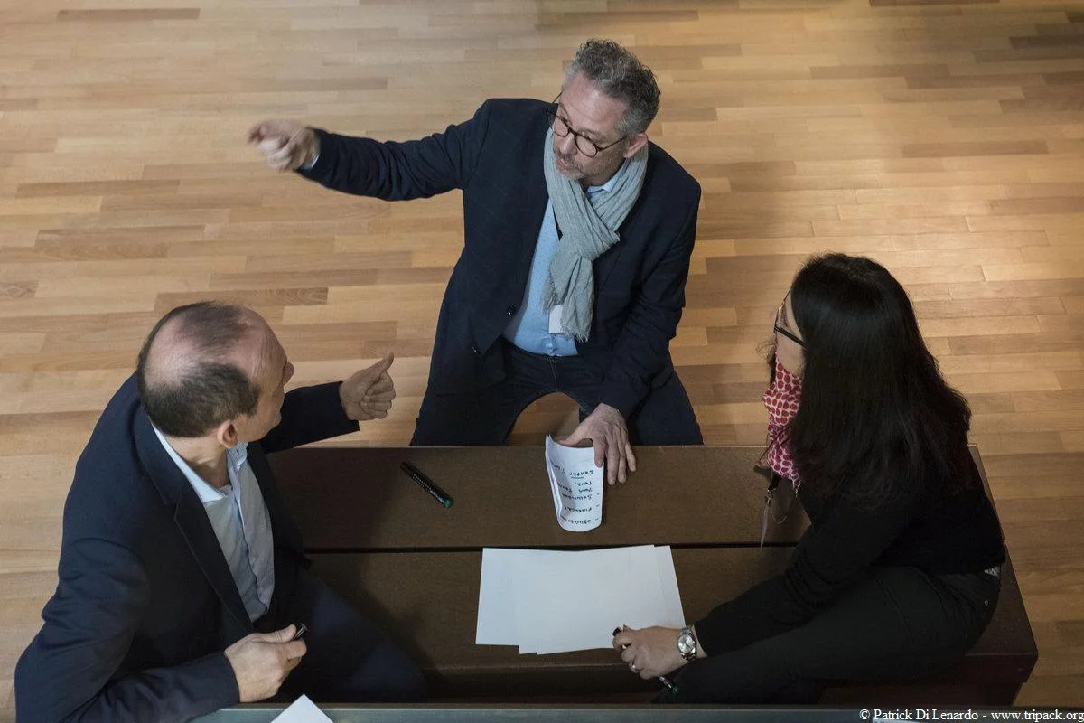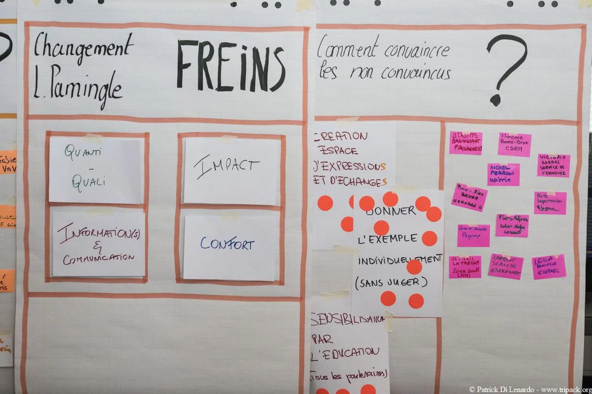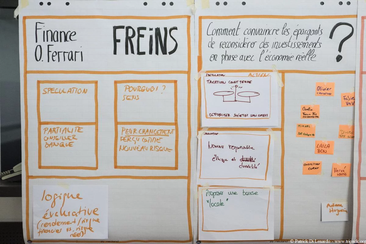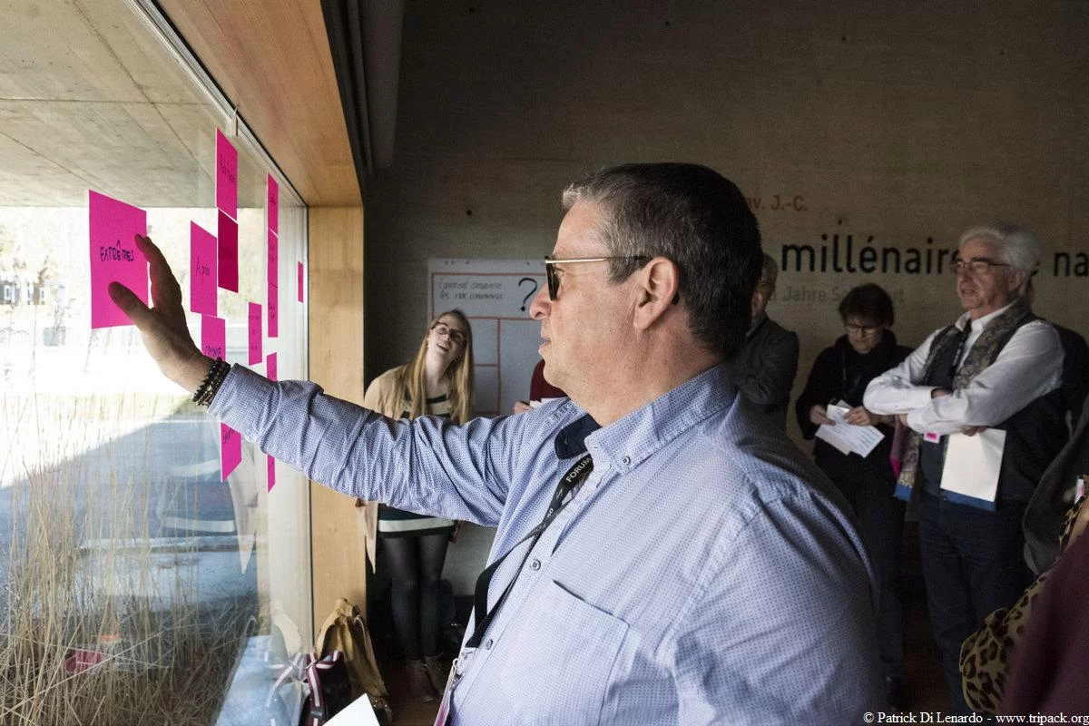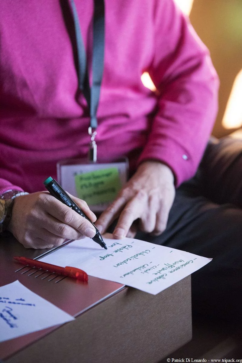 Ces personnalités ont, chacune à leur tour, effectué un pitch de 3min afin d’adresser une question aux chefs d’entreprises et acteurs de l’économie présents dans la salle afin de susciter la réflexion et des actions possibles pour répondre à cette question. Epaulés de facilitatrices de l’association Ecoparc, dont la mission était de stimuler les échanger entre les participants, les quatre groupes de travail ont été invités à proposer des actions concrètes et réalisables.